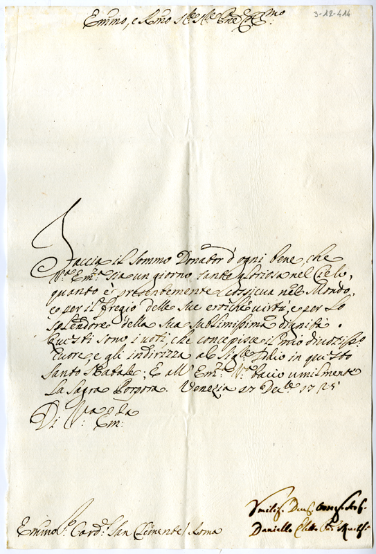 Lettera al cardinale Annibale Albani (1725 dicembre 17)