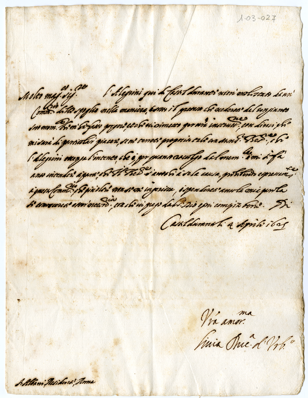 Lettera di Livia Della Rovere (1625 aprile 4)
