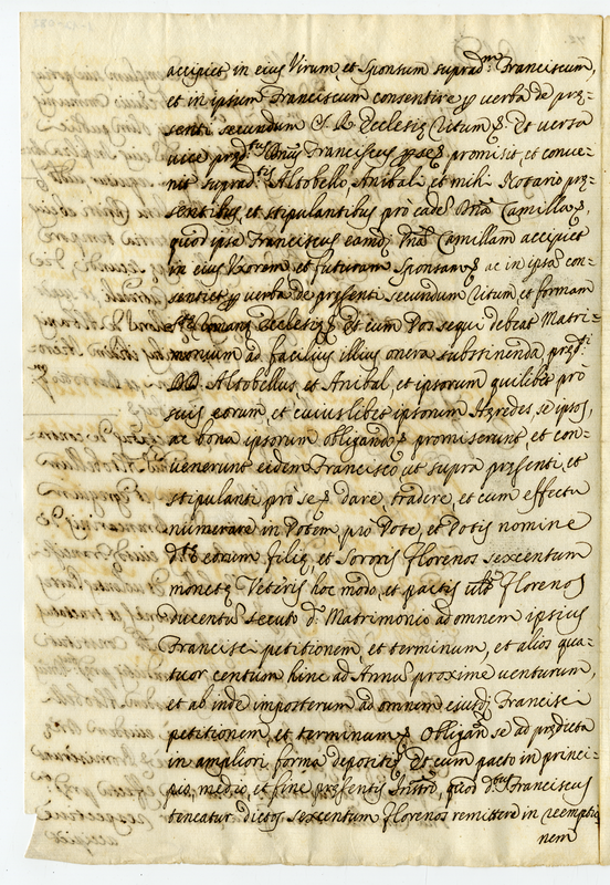 | dc.description | Contratto di matrimonio col quale Altobello Albani e Annibale suo figlio promettono per sposa di Francesco Brancarino Camilla Albani figlia di Altobello e sorella vespertina di Annibale | |
