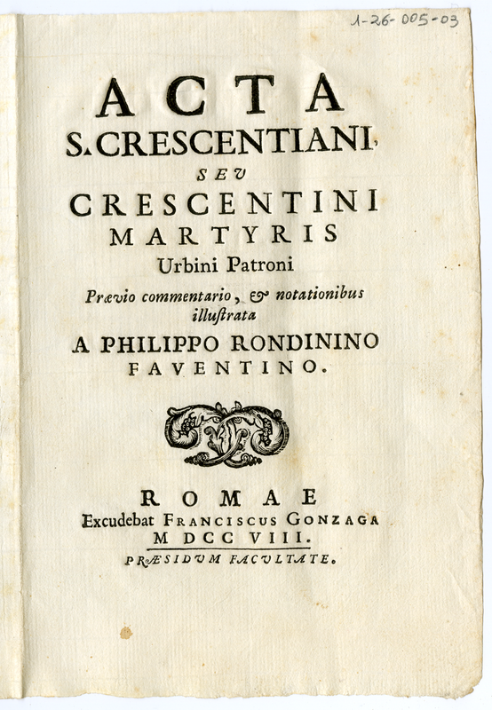 Acta S. Crescentiani seu Crescentini Martyris Urbini Patroni (1708)