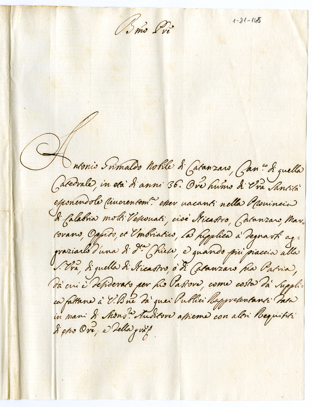 Chiede al Santo Padre di essere nominato in una chiesa vacante della provincia di Reggio Calabria