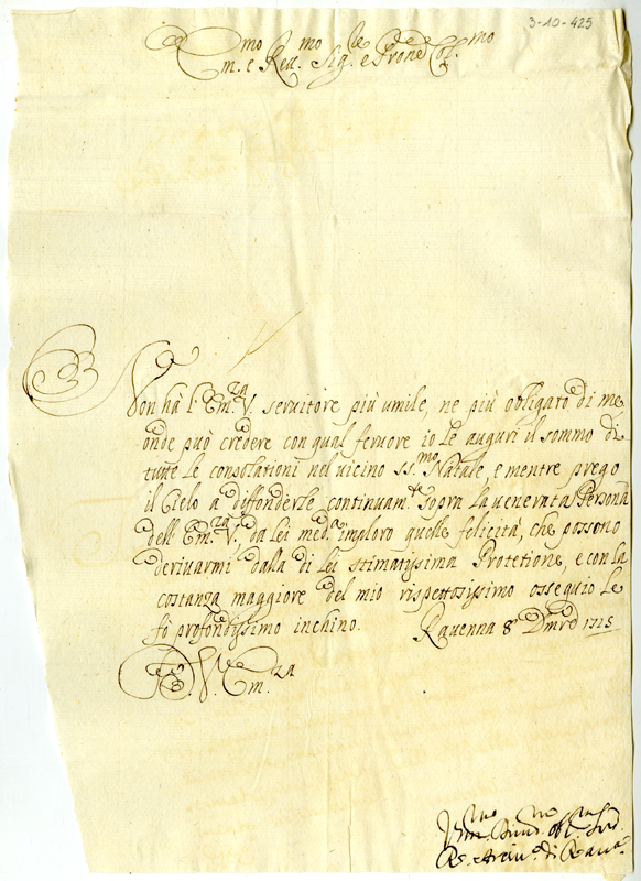 Lettera dell'arcivescovo di Ravenna al cardinale Annibale Albani (1715 dicembre 8)