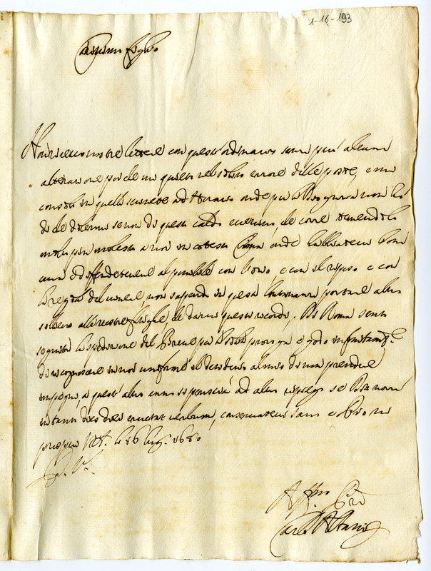 Lettera di Carlo Albani a Giovanni Francesco Albani (1680 luglio 16)