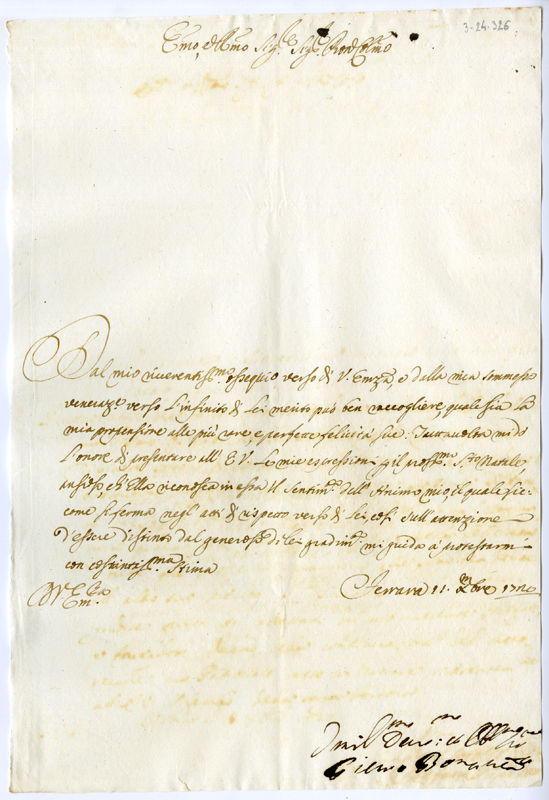 Lettera di Pietro Bonaventura al cardinale Annibale Albani (1720 dicembre 11)