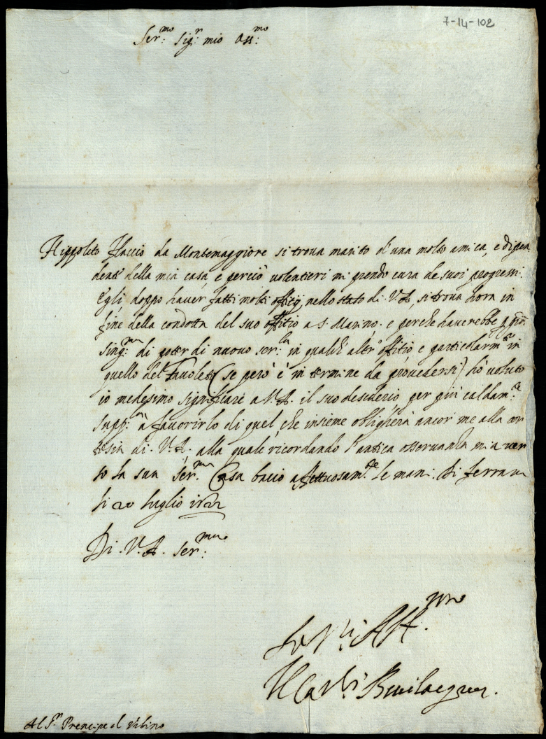 Lettere, memoriali al Serenissimo Principe d'Urbino appartenenti alla carica di segretario di Giustizia