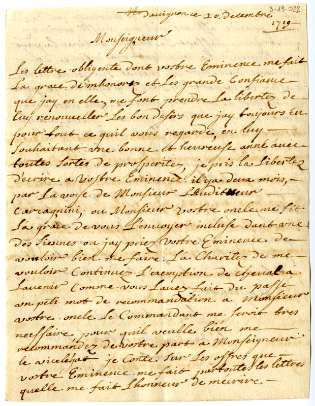 Lettera di Mattei ad Annibale Albani (1719 dicembre 20)