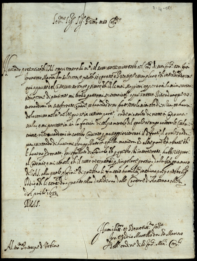 Lettere, memoriali al Serenissimo Principe d'Urbino appartenenti alla carica di segretario di Giustizia
