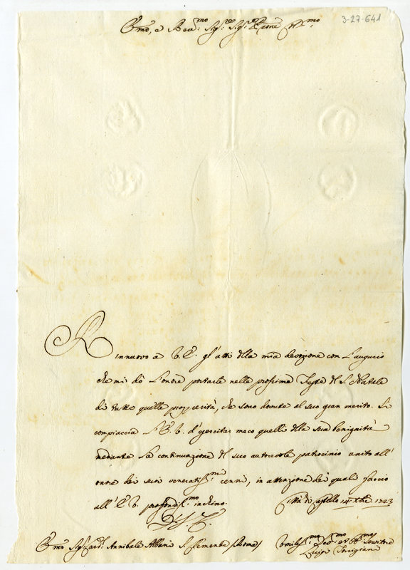 Lettera di Luigi Torrigiani al cardinale Annibale Albani (1723 dicembre 14)