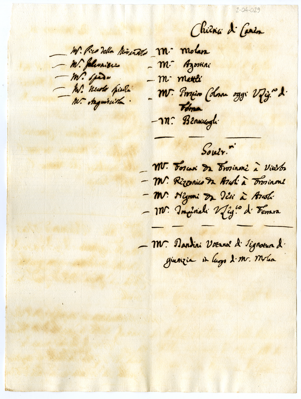 Elenco di nominativi e loro cariche (1700-1721)