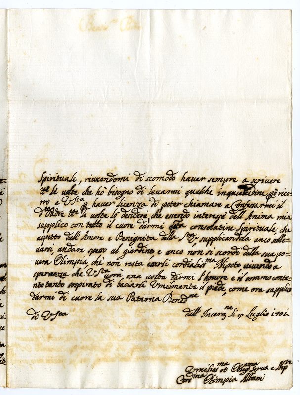 Lettera di Olimpia Albani a papa Clemente XI (1701 luglio 8)