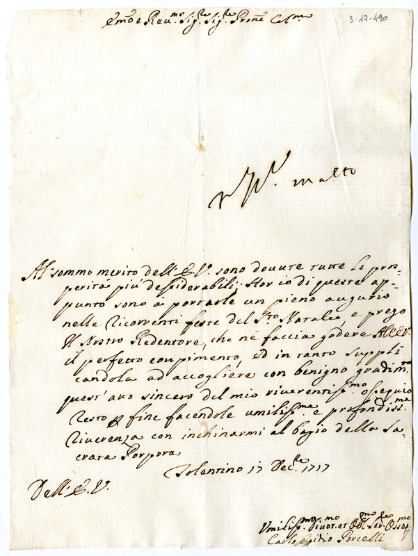 Lettera di Carlo Egidio Porcelli al cardinale Annibale Albani (1717 dicembre 17)