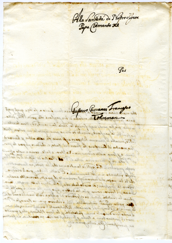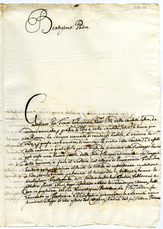 Lettera di Gustavo Giovanni Francesco Lhoreman a papa Clemente XI (1700-1721)