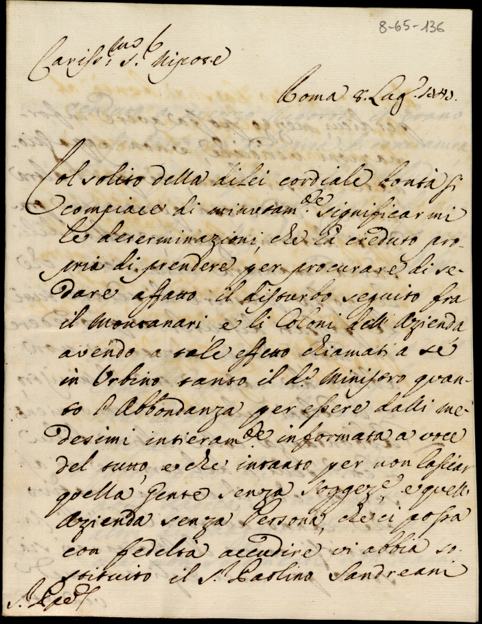 Lettere ricevute in Urbino dal Signor Principe Orazio Albani ultimo di questo nome nell'anno 1747