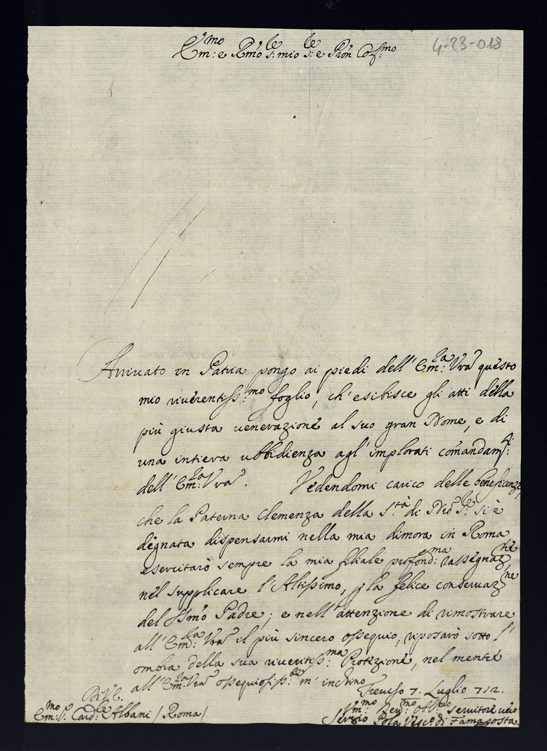 1712. Lettere di complimento e di negozio. Semestre secondo