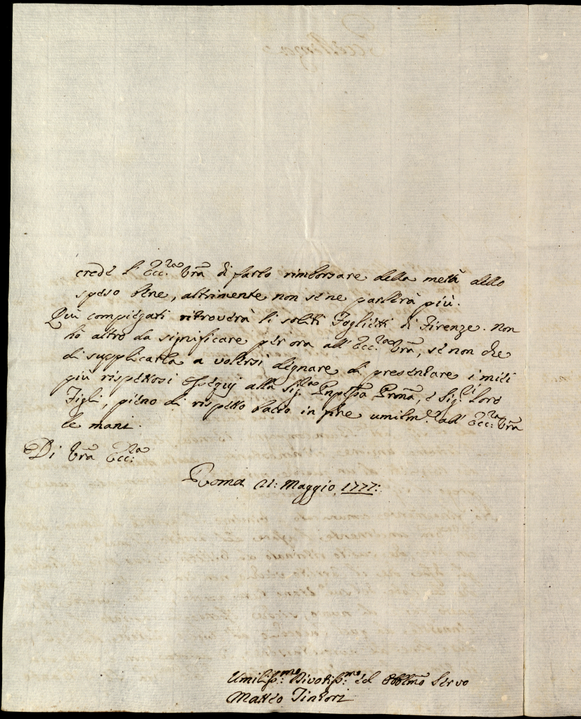 Lettere ricevute in Urbino nella permanenza in Urbino nei mesi di maggio, giugno e luglio 1777