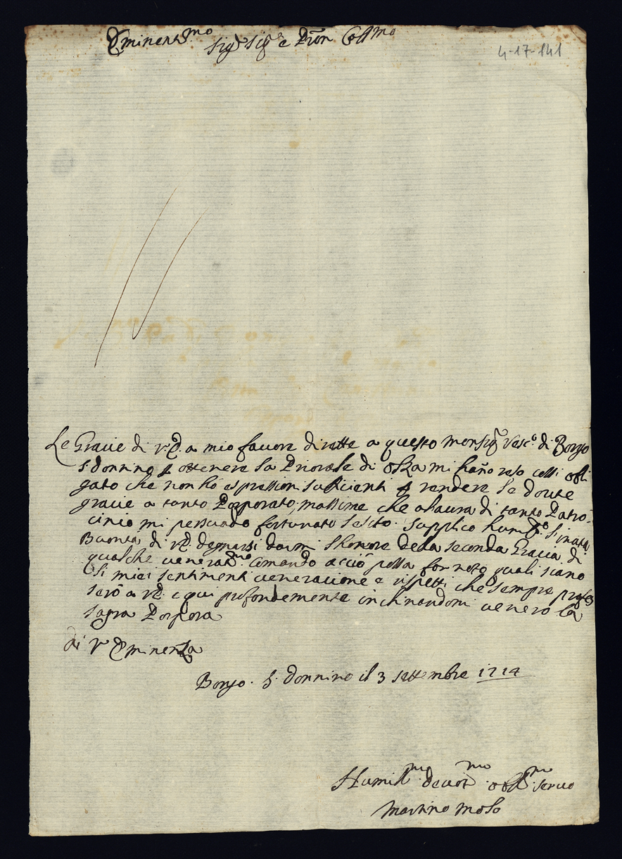 1714. Lettere di negozio e di complimento all'Illustrissima. Semestre secondo
