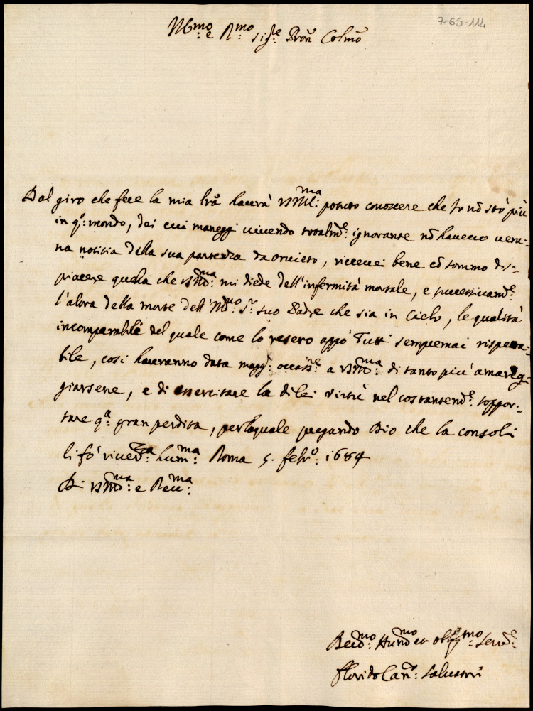 Lettere a Giovanni Francesco Albani per la morte del padre Carlo