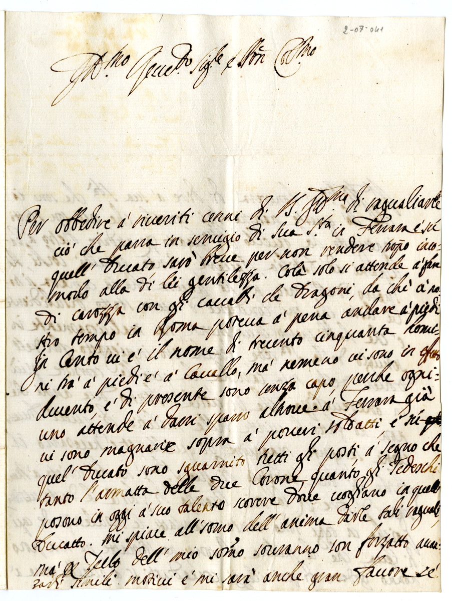 Lettera del conte Giulio Cesare Fibbia ad un prelato (1705 dicembre 12)