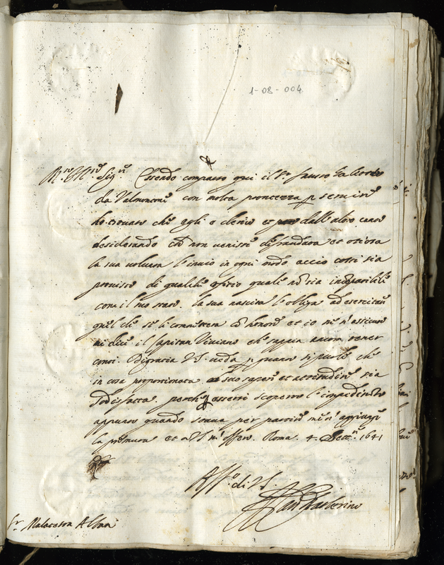 Lettera del Cardinale Barberini Francesco senior a Malatesta Albani (1641 settembre 4)