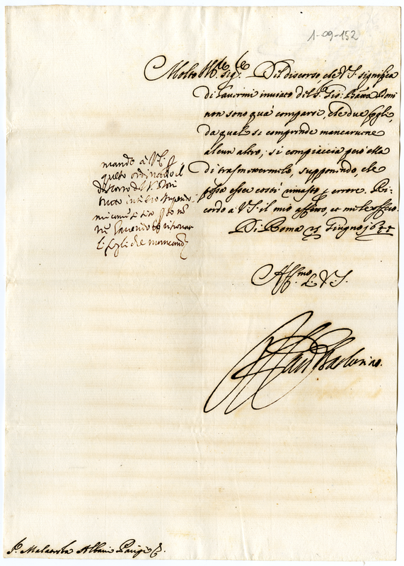 Lettera del cardinale Barberini Francesco senior a Malatesta Albani (1644 giugno 25)