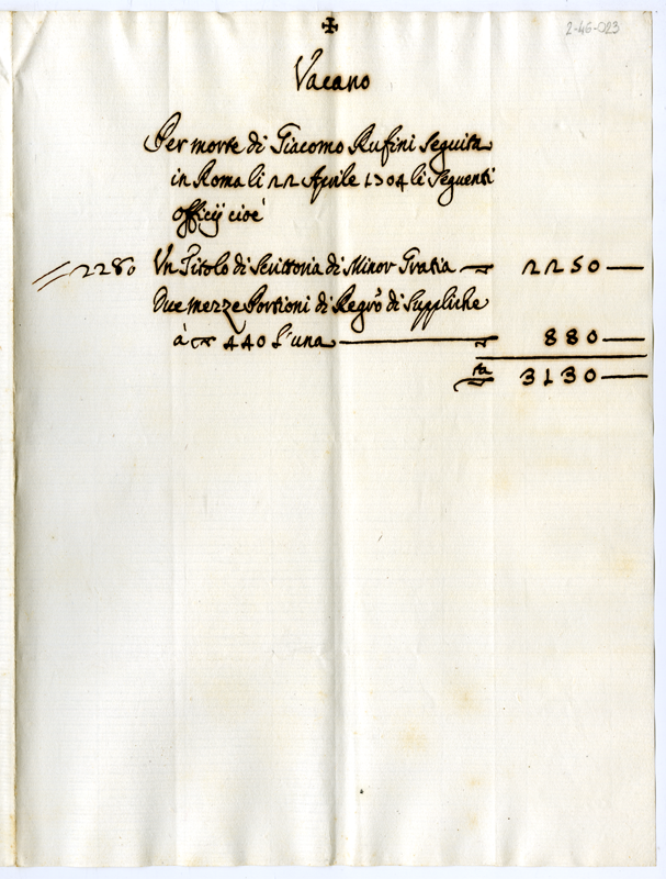 Uffici vacanti per morte di Giacomo Rufini (1704 aprile 22)