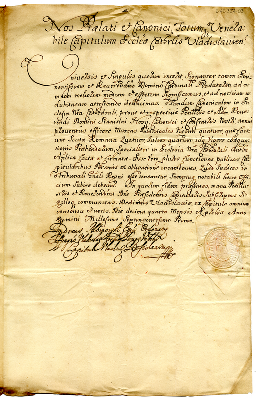 Lettera dei prelati e canonici e capitolo della cattedrale di Vladislavia (1701 aprile 14)