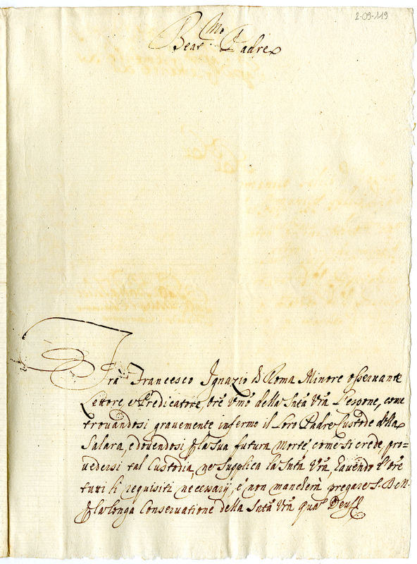 Lettera di fra Francesco Ignazio di Roma a Clemente XI (1700-1721)