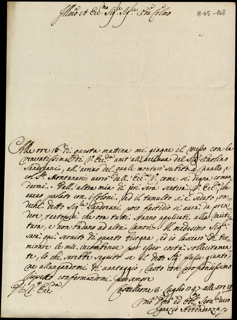 Lettere ricevute in Urbino dal Signor Principe Orazio Albani ultimo di questo nome nell'anno 1747