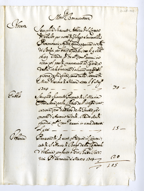 Benefici e pensione vacanti concessi a monsignor Bonaventura (1700-1721)
