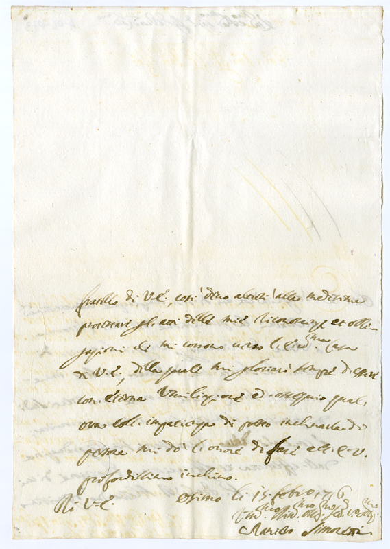 Lettera di Raniero Simonetti al Cardinale Annibale Albani (1716 febbraio 15)