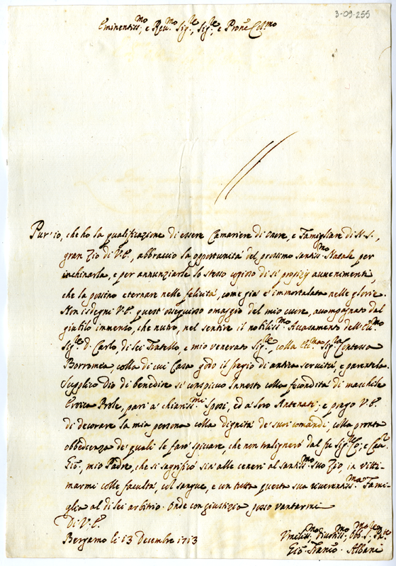 Lettera di Giovanni Francesco Albani al cardinale Annibale Albani (1713 dicembre 13)