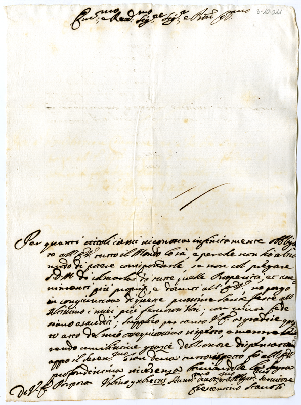 Lettera di Crescentino Staccoli al cardinale Annibale Albani (1715 dicembre 9)