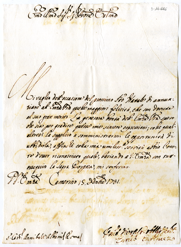 Lettera di Enrico Enriquez al cardinale Annibale Albani (1731 dicembre 15)