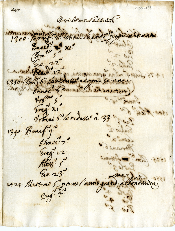 Notizie storiche della ricorrenza del Giubileo Universale dall'anno 1300 al 1700 con i relativi pontefici scritte da Annibale Albani e da papa Clemente XI
