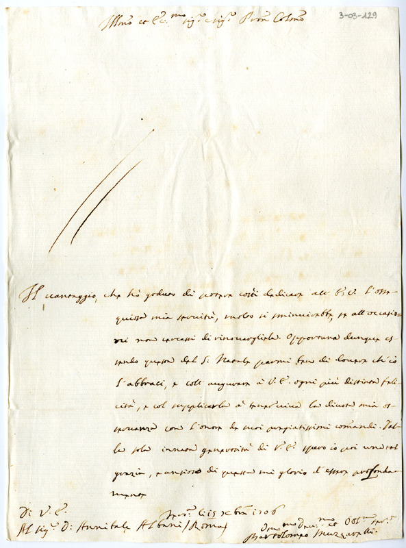 Lettera di Bartolomeo Muzzarelli ad Annibale Albani (1706 dicembre 15)