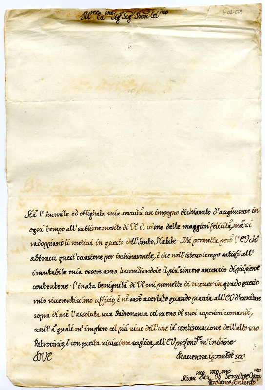 Lettera di Girolamo Archinto ad Annibale Albani (1705 dicembre 19)