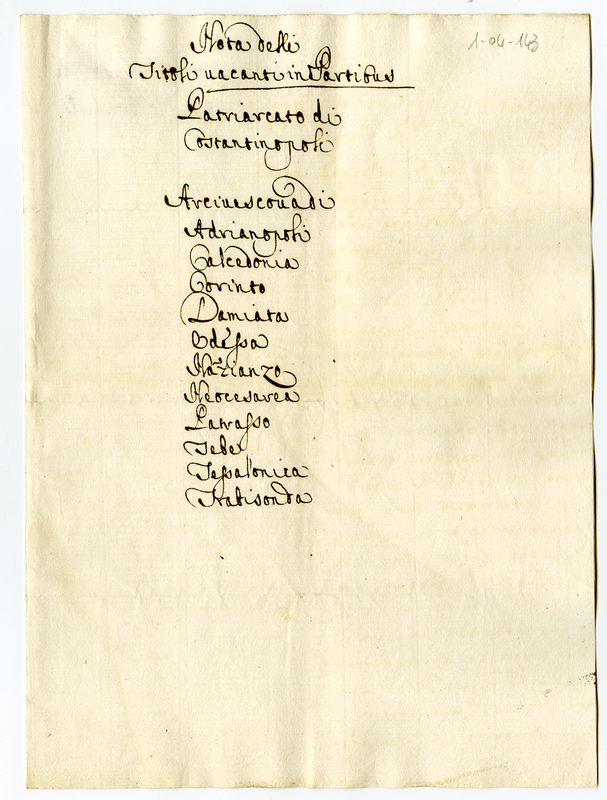 3. Lettere, memorie et altre scritture spettanti alli Vescovati, e benefici ecclesiastici vacanti in Toscana, alli Vescovati di libera collazione della Santa Sede nello Stato di Milano, alli Vescovati del Genovesato, et Isola di Corsica. Ad alcuni della Germania, e d'altre parti con la notizie de titoli delli Patriarcati, Arcivescovati e Vescovati in partibus vacanti nel tempo del pontificato di Papa Clemente XI