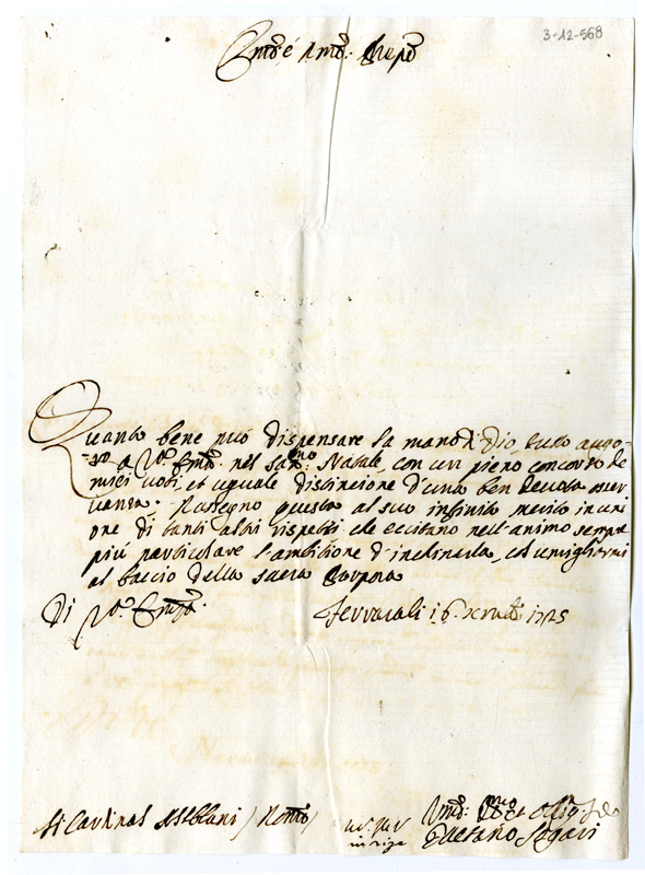 Lettera di Gaetano Sogari al cardinale Annibale Albani (1725 dicembre 16)