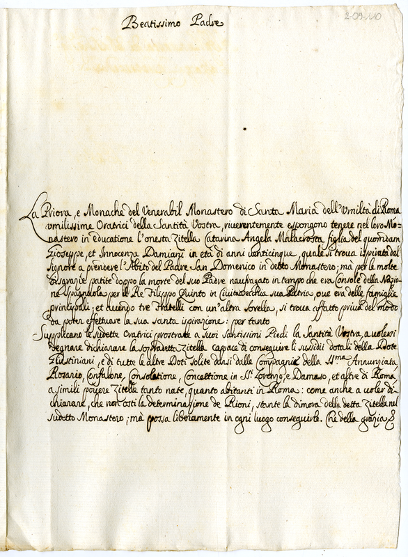 Lettera della priora e monache del monastero di Santa Maria dell'Umiltà di Roma a Clemente XI (1700-1721)
