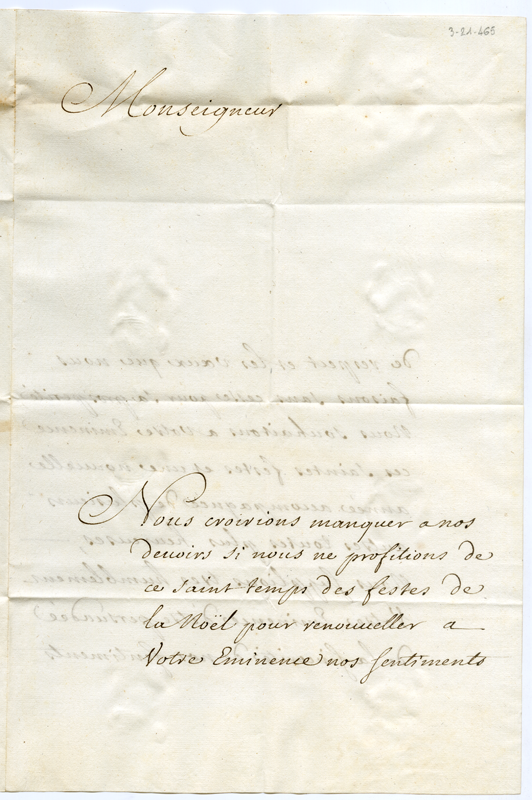 Lettera dei consoli della città di Avignone al cardinale Annibale Albani (1729 dicembre 13)