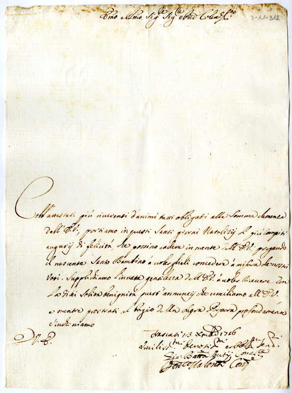 Lettera di Giovanni Battista Butii e Domenico Valenti al cardinale Annibale Albani (1716 dicembre 13)