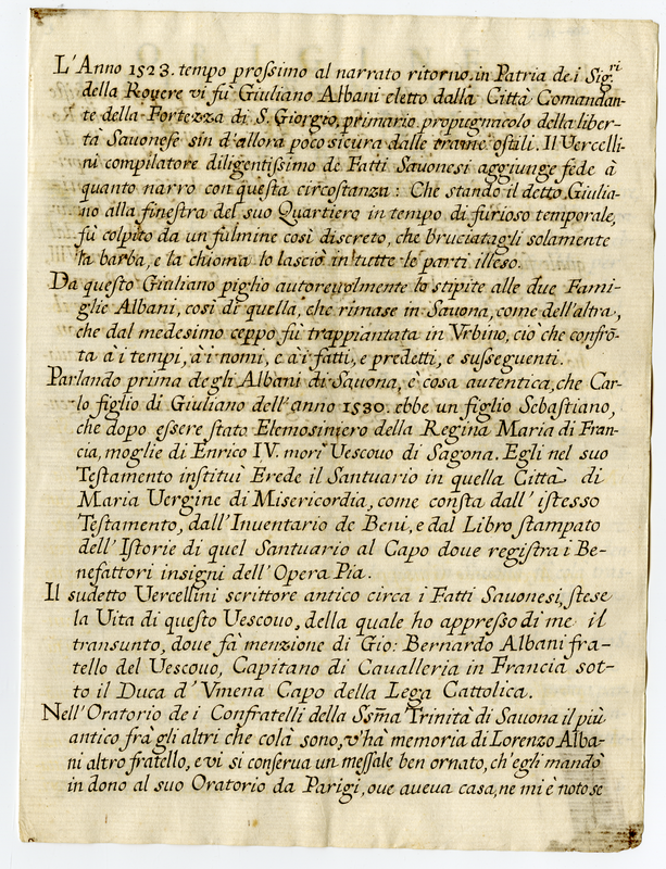 Discendenza della famiglia Albani di Urbino dagli Albani di Savona