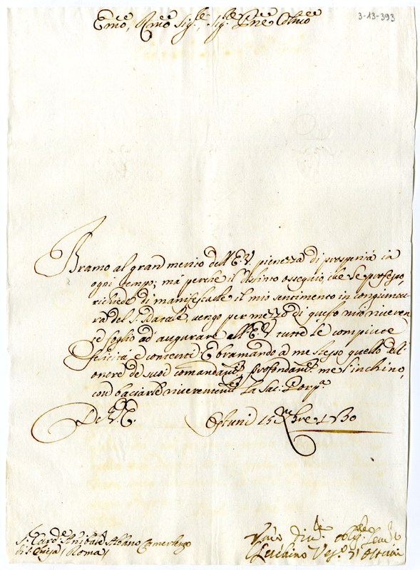 Lettera di Conone Luchini dal Verme vescovo di Ostuni al cardinale Annibale Albani (1730 dicembre 15)
