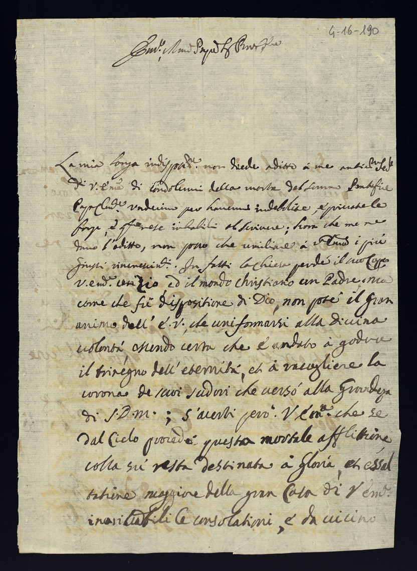 Lettere di condoglianza per la morte di Papa Clemente XI di gloriosa memoria