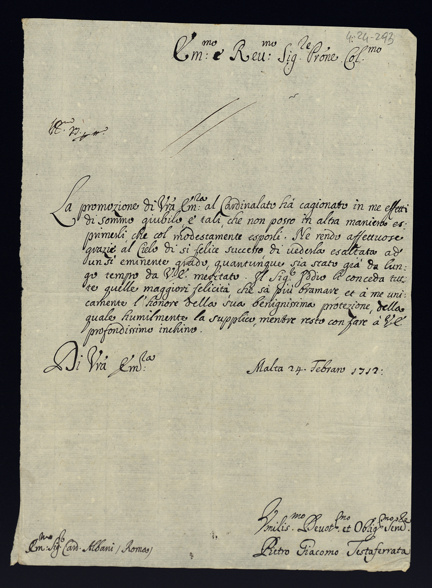 Lettere di congratulazioni per la promozione di sua eccellenza al cardinalato