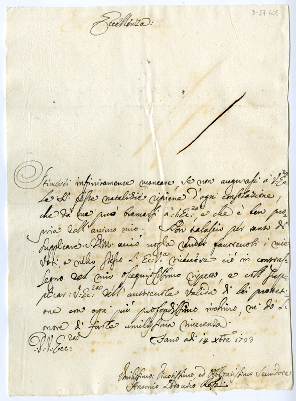 Lettera di Antonio Lodovico Rossi al cardinale Annibale Albani (1723 dicembre 14)