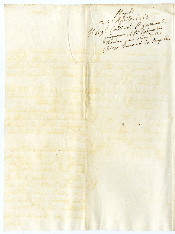 Lettera del cardinale Pignatelli a monsignore Marefoschi auditore di Nostro Signore (1713 aprile 22)
