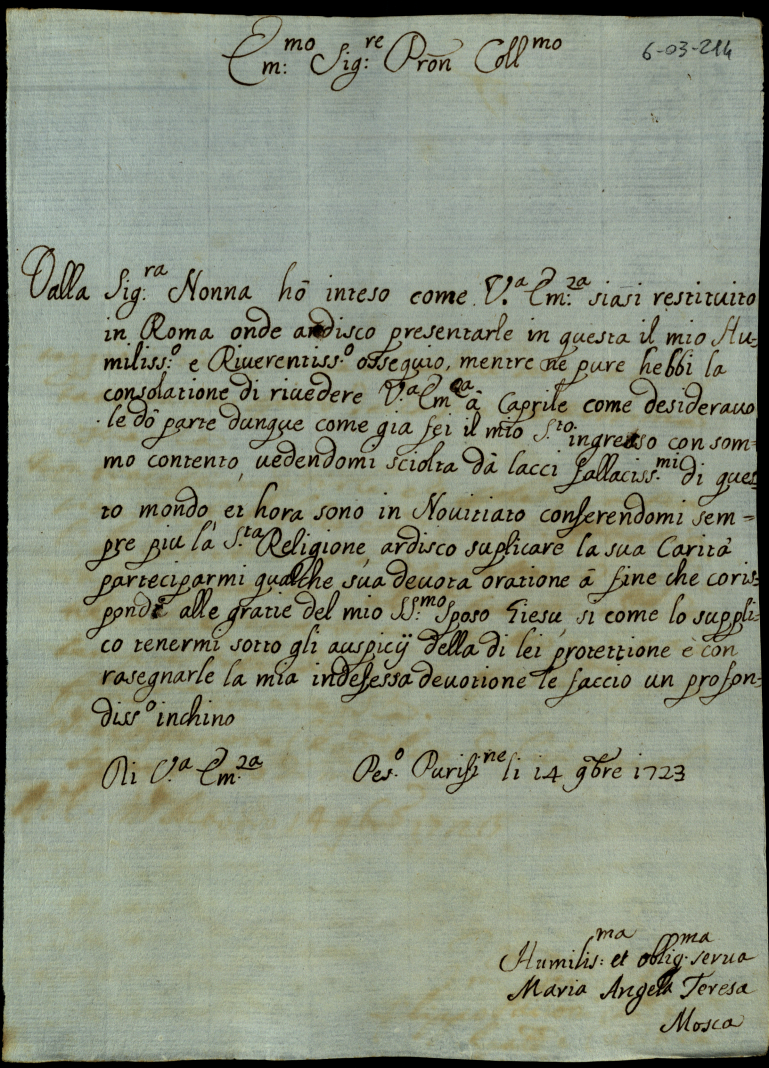 Lettere di complimento e di negozio. 1723. Semestre secondo