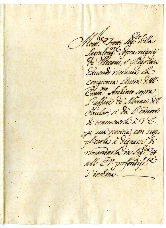 Biglietto di presentazione della lettera del cardinale Archinto al cardinale Carpegna (1700)