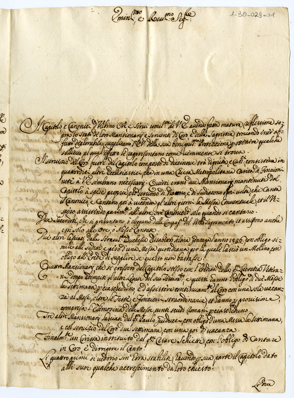 Memoriale del Capitolo e Canonici di Urbino al Cardinale Paolucci (1709)